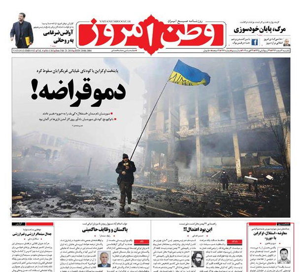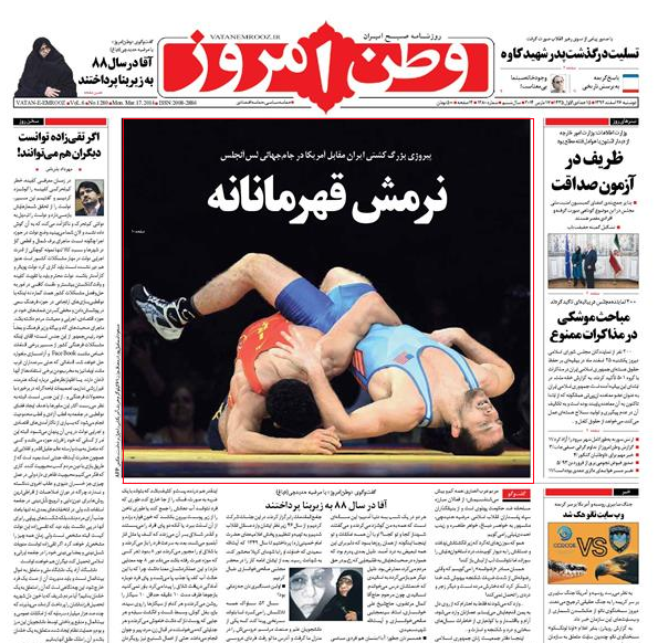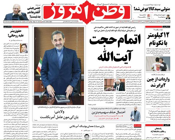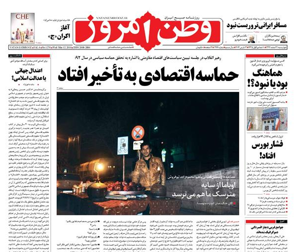 صفحه اول روزنامه وطن امروز 14 اسفند 92