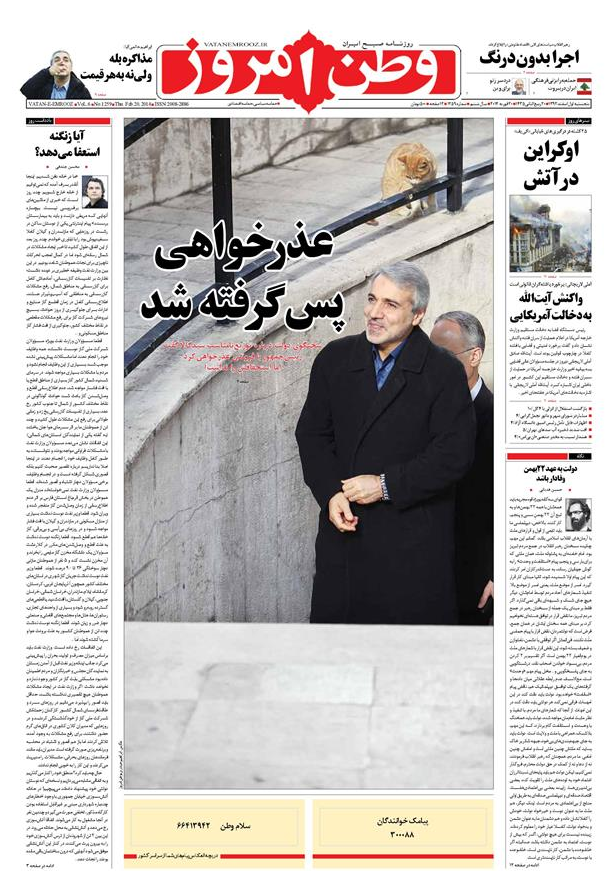 صفحه اول روزنامه وطن امروز 11 اسفند 92