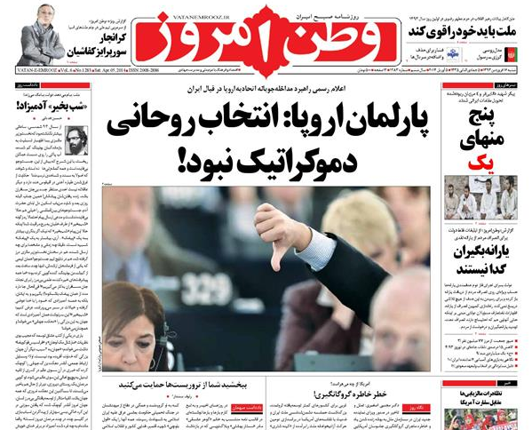 صفحه اول روزنامه وطن امروز 19 فروردین 93