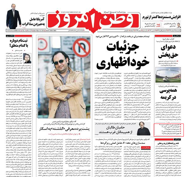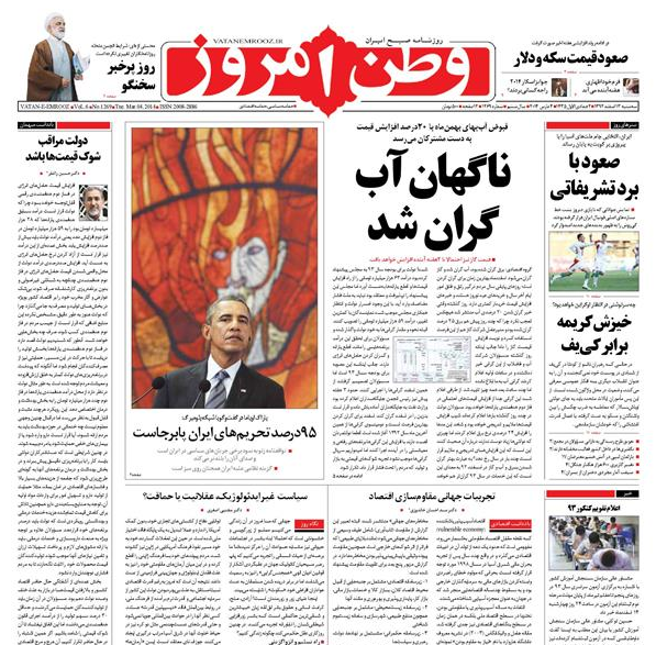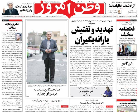 صفحه اول روزنامه وطن امروز 20 فروردین 93