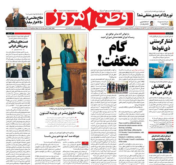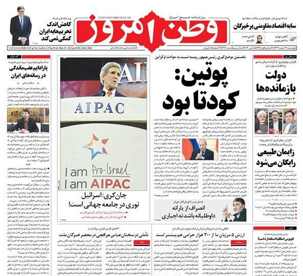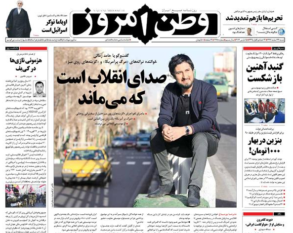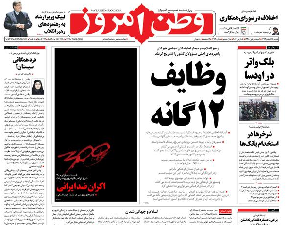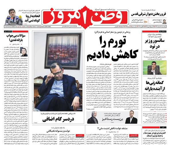 صفحه اول روزنامه وطن امروز 19 اسفند 92